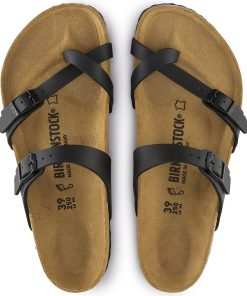 The Mayari from BIRKENSTOCK – an elegantly comfortable sandal with adjustable, crisscrossing straps that form a single loop around the toe. Classic support and adjustability, designed beautifully. Shown in Birko-Flor®.