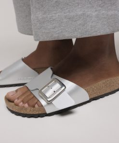 Birkenstock Women’s Sandals Catalina Luxe Buckle Birko-flor Silver Metallic | Silver Metallic