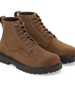 With the Highwood, BIRKENSTOCK presents an understated, mid-calf Chelsea boot that’s instantly recognizable as an authentic BIRKENSTOCK original thanks to the cork elements in the sole. Thanks to the lacing, it offers maximum support and adjustability. The comfortable and light Deep Blue Footbed makes the shoe a perfect 24/7 all-rounder, especially on long and active days. Perfect for your next holiday, extensive walks, or city trips. This version features a high-quality rubber outsole with a stud pattern for excellent traction. Biomechanically positioned elements promote a natural movement and ensure maximum comfort when walking. The upper is made from especially soft suede which hugs the foot like a second skin.