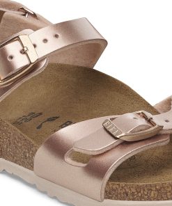 The BIRKENSTOCK Rio is a sporty, elegant sandal with an ankle strap that offers reliable and comfortable grip – including during boisterous play. This sandal was reinterpreted in an extravagant electric metallic look. The reflective film makes this classic model dazzle and is sure to make any outfit turn heads. The upper is made from skin-friendly, hard-wearing Birko-Flor®.