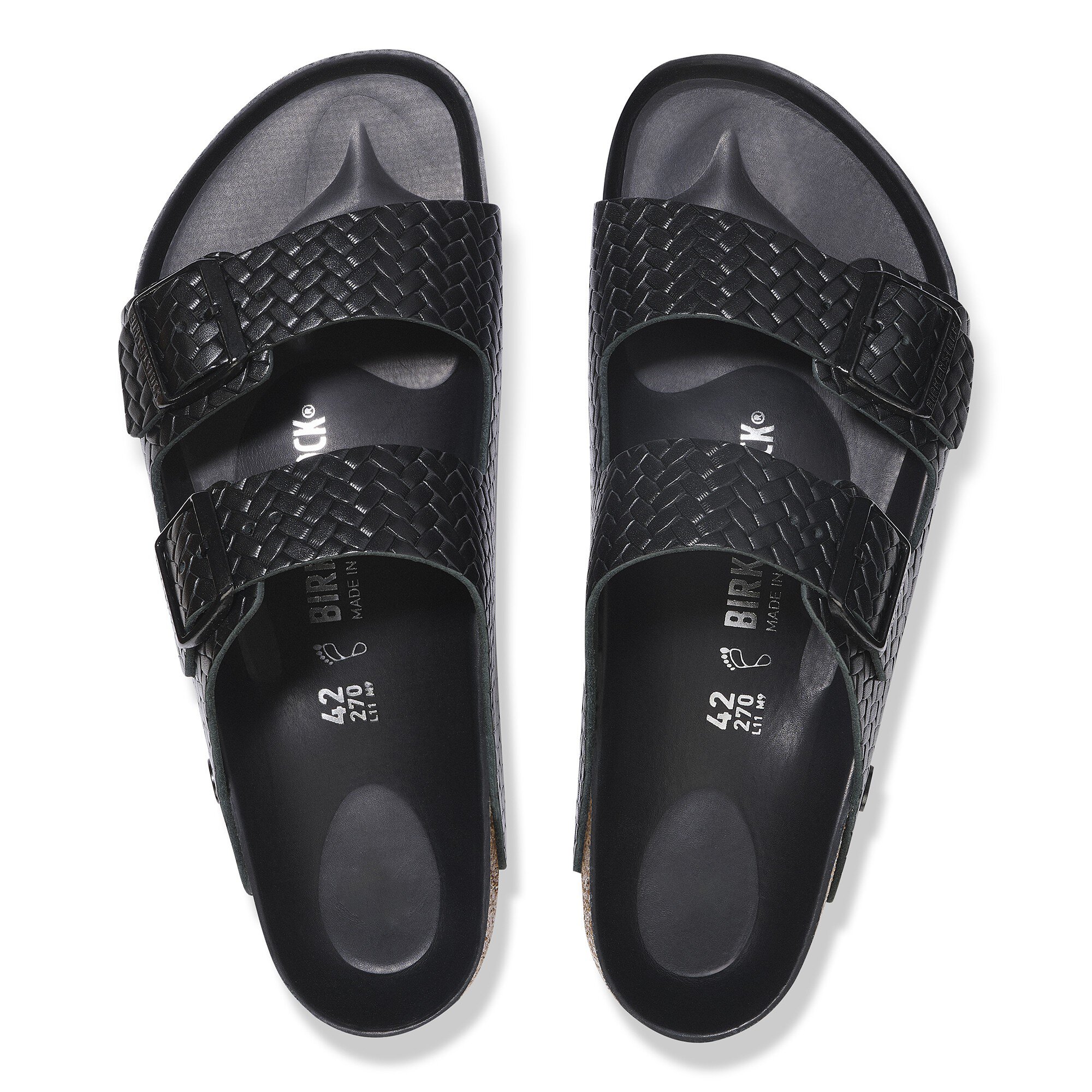 As handcrafted as it looks. The Arizona sandal is embossed for a textured effect, giving the two-strap look a woven appearance. On an original contoured footbed that’s been wrapped in luxuriously smooth leather for a premium touch.