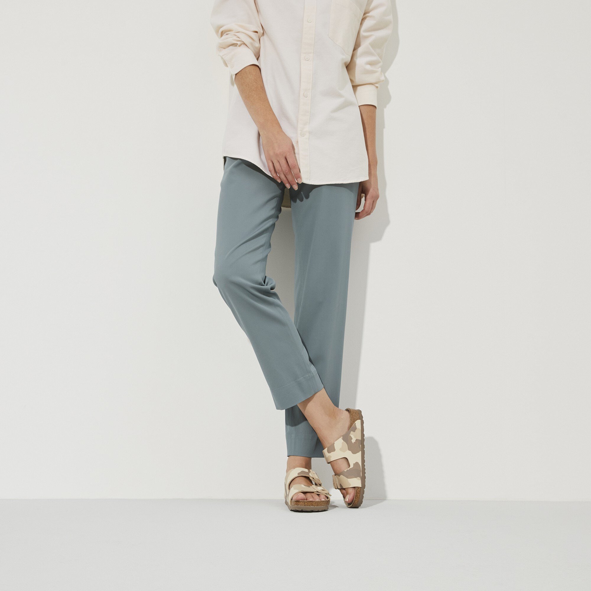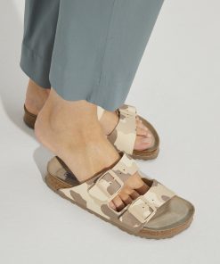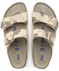 The legendary two-strap design from BIRKENSTOCK – the Arizona. Iconic style complemented with the signature comfort of the BIRKENSTOCK footbed. Featuring a muted camouflage print, as well as tonal buckles. With its additional foam layer, the soft footbed offers extra comfort – all day long. The upper is made from Birko-Flor®.