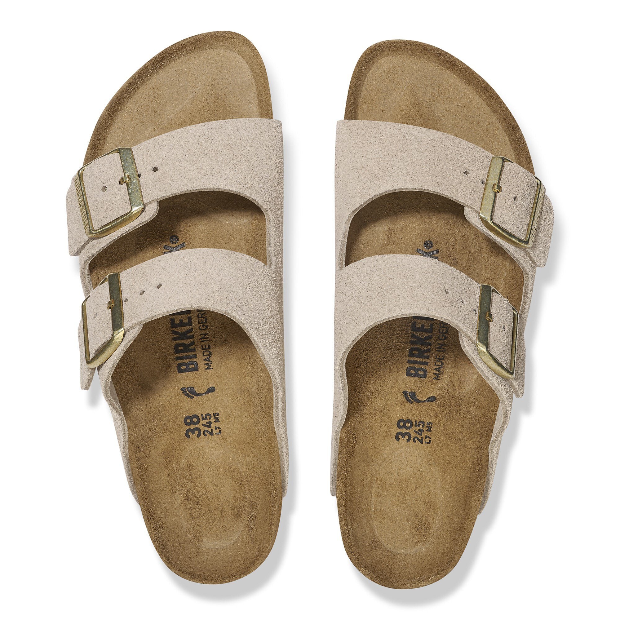 An icon of timeless design and legendary comfort, the Arizona sandal has been defining style since 1973. Classic, velvety suede gives the laid-back look that every season, any style appeal. Complete with legendary BIRKENSTOCK design elements, like a contoured cork-latex footbed for the ultimate in support.