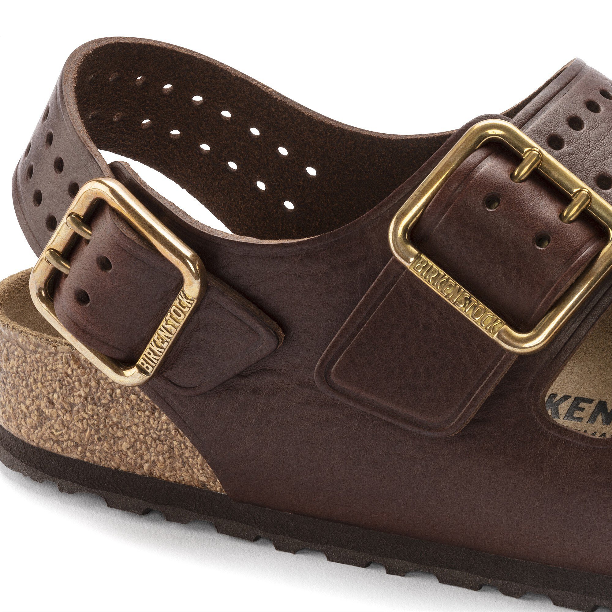 The Milano sandal adds an adjustable backstrap to its classic, two-strap design, giving you more security and a fit that’s just right. This modern version features an upper made from aniline leather complemented by brass buckles for a classic look. This Milano is designed with a unique Rubber Grip outsole for added traction and durablity.