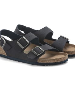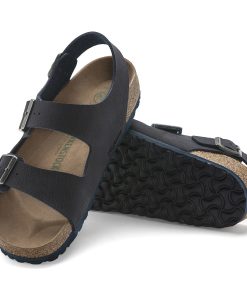 The BIRKENSTOCK Milano, now in vegan, features a compact design with an ankle strap. The metal pin buckles are individually adjustable with color-coordinated outsole. The upper is made from skin-friendly microfiber.