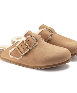 Birkenstock Men’s Shoes Boston Bold Shearling Nubuck Leather Cognac | Cognac
