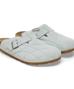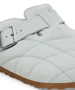 Birkenstock Men’s Shoes Boston Quilted Suede Leather Aqua | Aqua