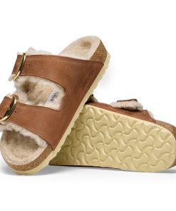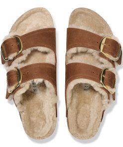 Birkenstock Women’s Sandals Arizona Big Buckle Shearling Oiled Leather Cognac | Cognac