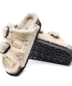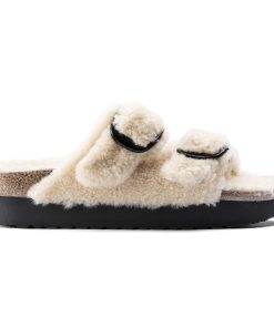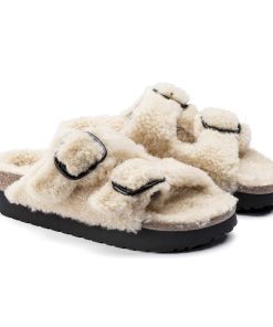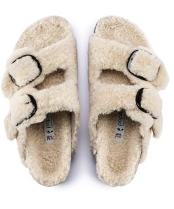 The iconic Arizona two strap sandal, now available in all over teddy shearling. Extra cozy, extra comfortable with amplified big buckles for a bold style.