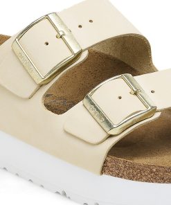 Birkenstock Women’s Sandals Arizona Flex Platform Nubuck Leather Ecru | Ecru
