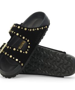 An icon of timeless design and legendary comfort, the Arizona sandal has been defining style since 1973. Metallic rivets stud its classic suede upper in an eyecatching design, precisely placed to leave the underside smooth for comfortable wear. It rests on an Exquisite footbed fully lined in smooth leather for a supportive, luxe-to-the-touch feel.