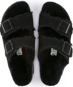 Birkenstock Women’s Sandals Arizona Shearling Suede Leather Black | Black
