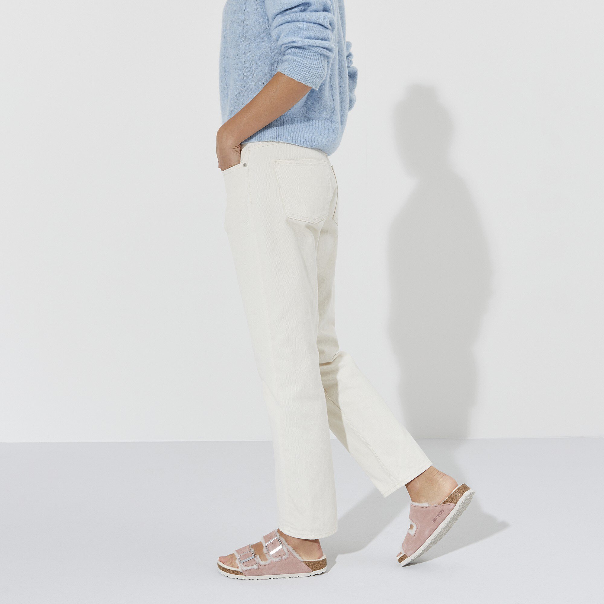 The legendary two-strap design from BIRKENSTOCK – the Arizona. Iconic style with the signature comfort of the BIRKENSTOCK footbed. Featured in genuine high-quality suede – and is now available in an extra cozy version thanks to a soft, genuine shearling lining on the anatomically formed cork-latex footbed and straps. These sandals are perfect for chilly, winter evenings.