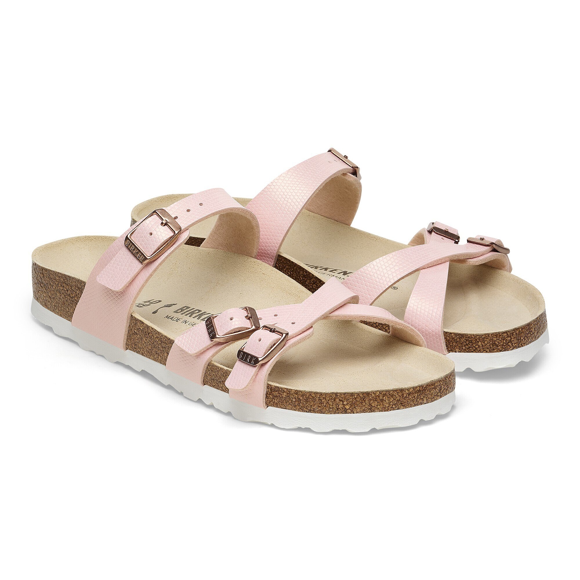 The Franca sandal, shined up to catch the light just right. Embossed, shimmery Birko-Flor® brings subtle dimension to the strappy style. With an original contoured footbed for support, this one is ready to chase the sun when you are.