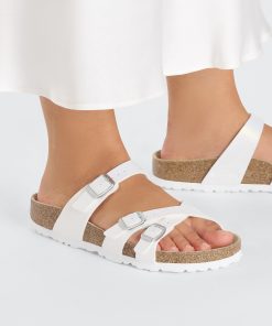 The Franca sandal, shined up to catch the light just right. Embossed, shimmery Birko-Flor® brings subtle dimension to the strappy style. With an original contoured footbed for support, this one is ready to chase the sun when you are.