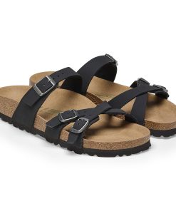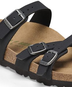 The BIRKENSTOCK Franca is an elegant model designed with slim, stylish crisscrossed straps. Featuring an impressive combination of design and wearability for all day comfort. Now available in vegan materials. The upper is made from the skin-friendly, hard-wearing synthetic material Birkibuc.