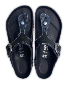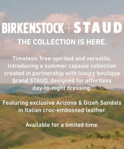 Introducing the BIRKENSTOCK + STAUD Summer Capsule: a limited-edition collection of timeless, free-spirited and versatile pieces created in partnership with luxury boutique brand STAUD. Designed for effortless day-to-night dressing, the collection includes this elevated Gizeh, made with croc embossed leather, oversized buckles and STAUD’s signature contrast-stitching. Pair with STAUD dresses and separates for any and all occasions the ultimate outfit completer. STAUD ready-to-wear and accessories available at staud.clothing.