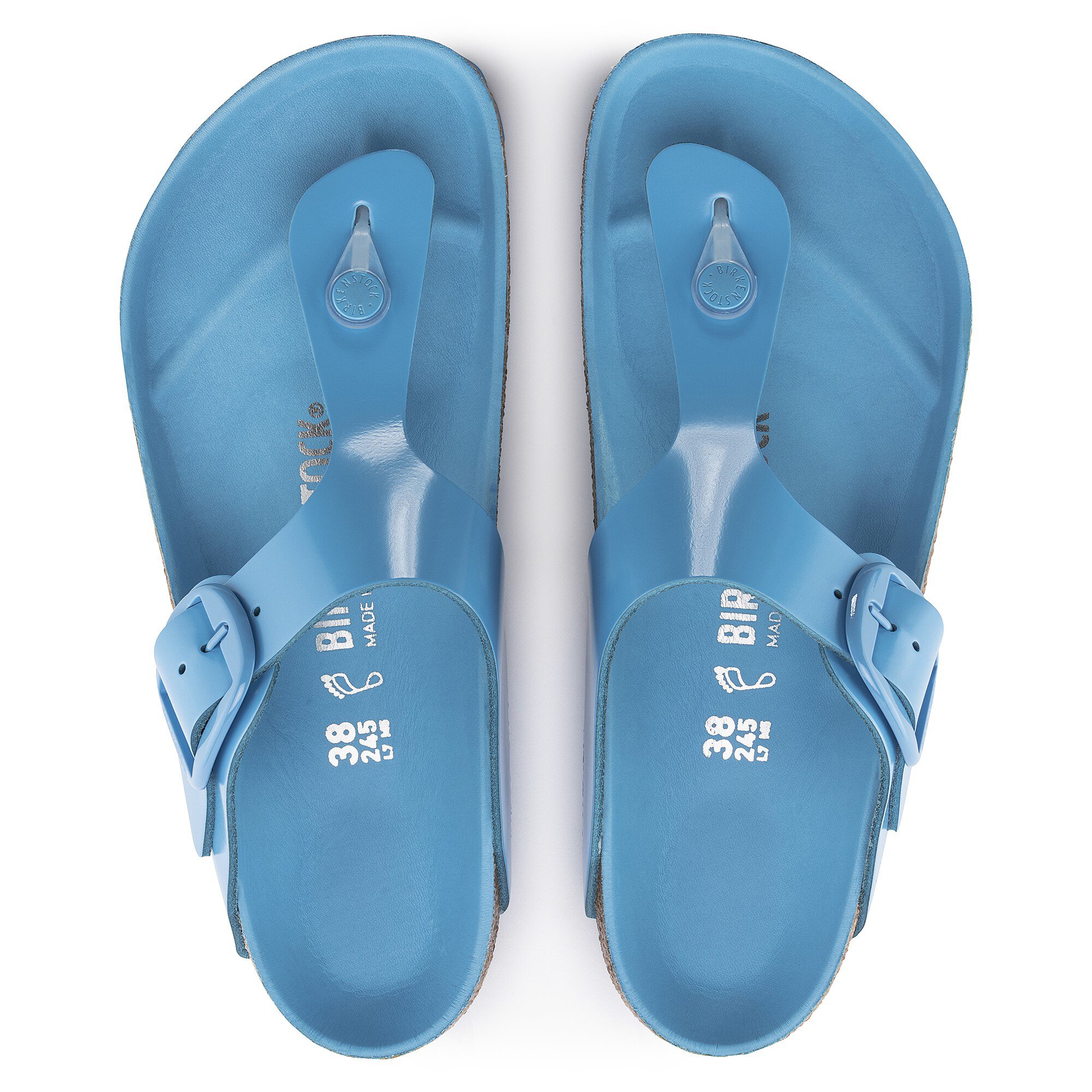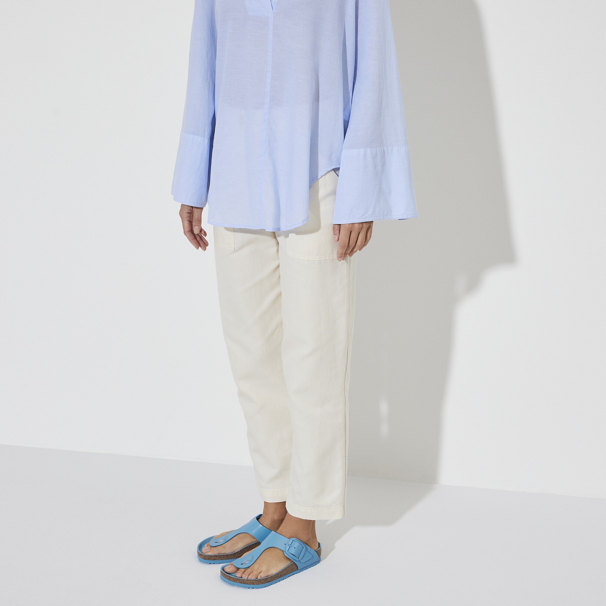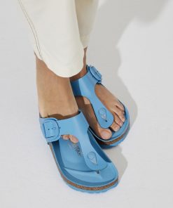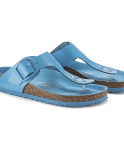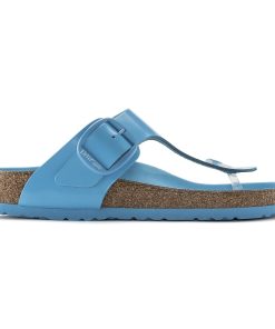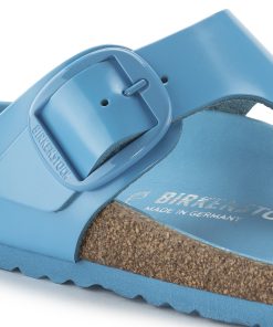 A modern thong sandal from BIRKENSTOCK with amplified buckle accent—the Gizeh Big Buckle. The semi-exquisite footbed is fully lined with soft piumato leather, making it exceptionally comfortable. The upper is made from high-quality natural leather with a high shine finish.