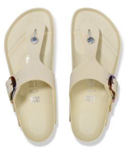A BIRKENSTOCK® icon since ’83, the Gizeh thong sandal is all elegance and comfort. This season, an oversized buckle accessorizes soft nubuck leather for any occasion. Equally sophisticated and supportive, it rests on the contoured footbed you’ve loved since forever.