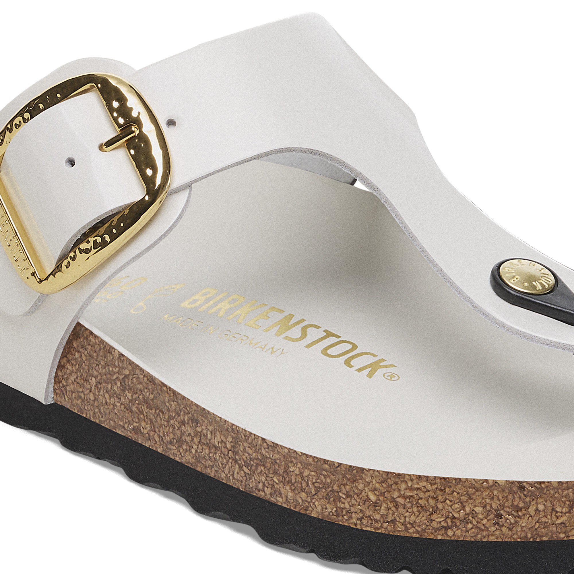 Elegant and refined since ’63. The Gizeh sandal doubles the buckle and ups the shine with oversized, hammered hardware and a glossy finish. The style is grounded in our original contoured footbed, lined with ultra-smooth leather for a luxe feel every time.