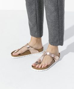 Eyecatching. The Gizeh sandal dresses for RSVP season in metallic leather. Outfitted with a soft footbed, featuring an extra layer of cushioning for last-to-leave support.