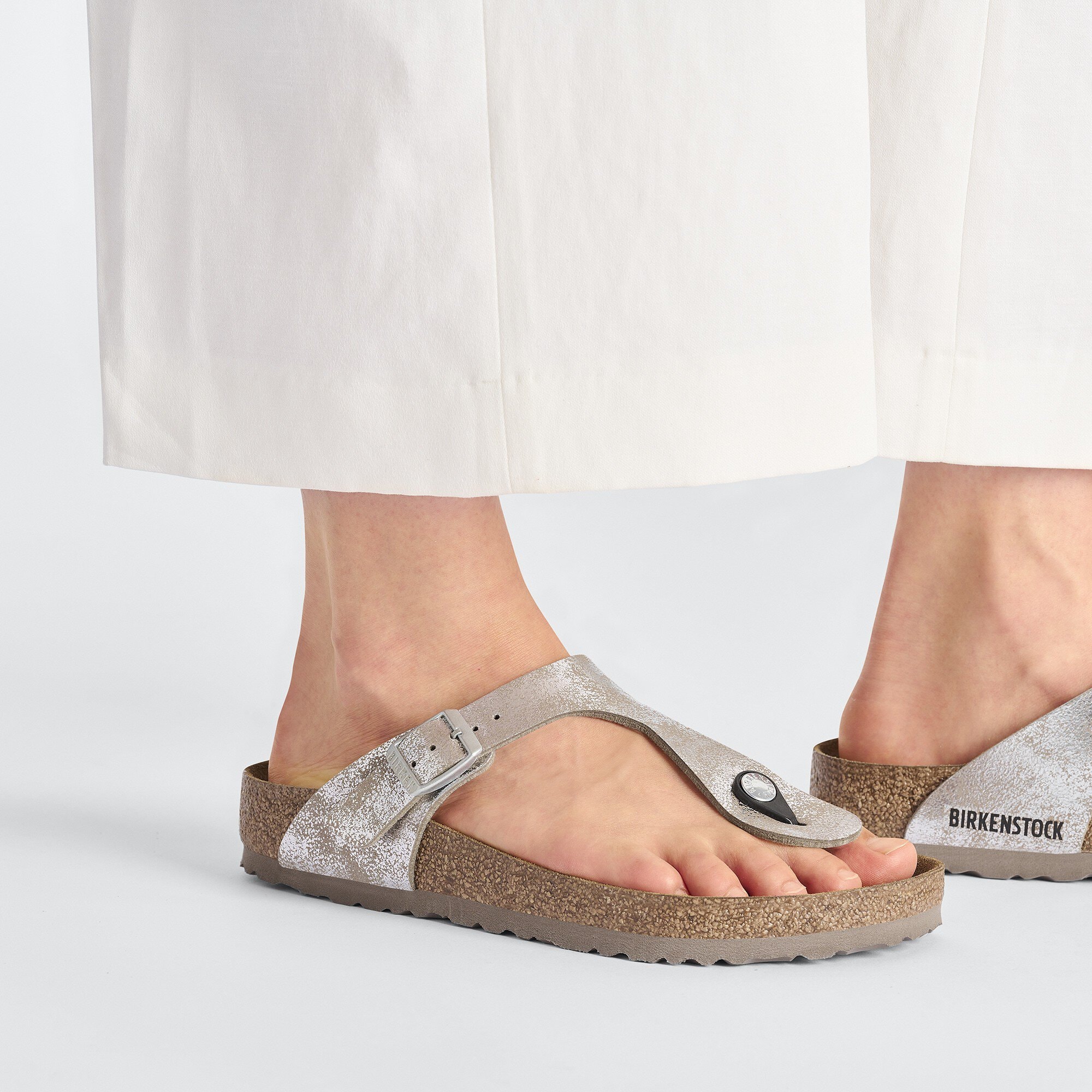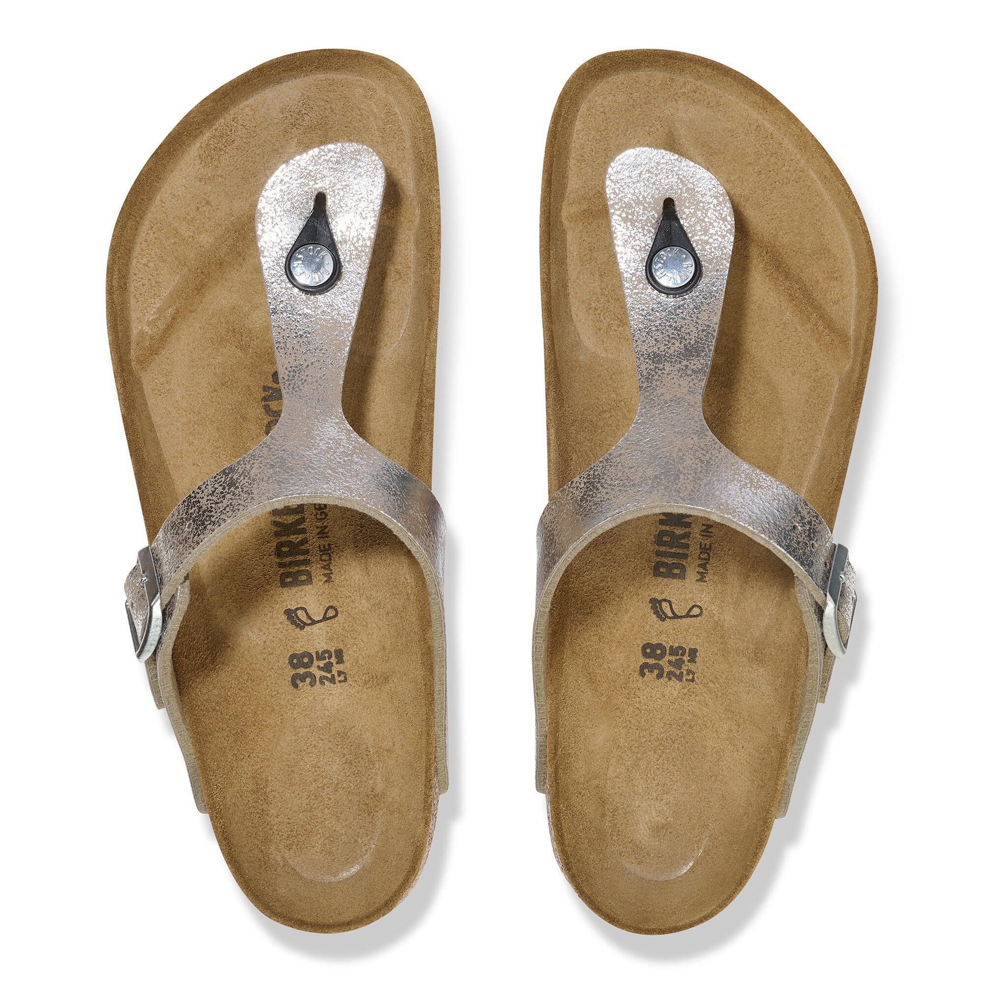 The Gizeh sandal refines the fit with legendary comfort and elegant detailing. This season, a washed metallic shines up the original design with a subtle sheen. It rests on an original contoured footbed, designed to shape to you for the ultimate in support.