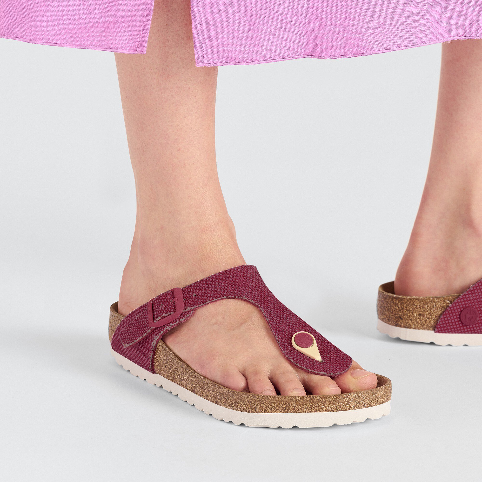 The Gizeh sandal refines the fit with legendary comfort and elegant detailing. This season the design goes vegan with a 100% natural cotton canvas upper—as laid-back and effortless as it looks. The style stays grounded in an original contoured footbed, designed to shape to you for custom support.
