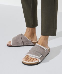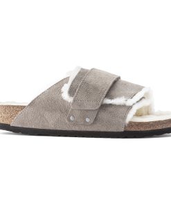 Birkenstock Women’s Sandals Kyoto Shearling Suede Leather Stone Coin | Stone Coin