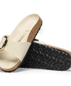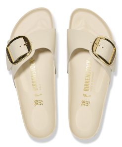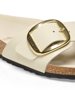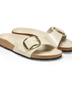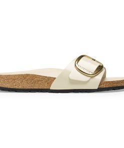 Birkenstock Women’s Sandals Madrid Big Buckle Natural Leather Patent High Shine Ecru | High Shine Ecru