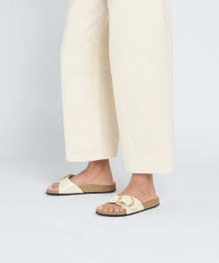 Birkenstock Women’s Sandals Madrid Big Buckle Natural Leather Patent High Shine Ecru | High Shine Ecru