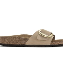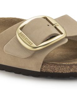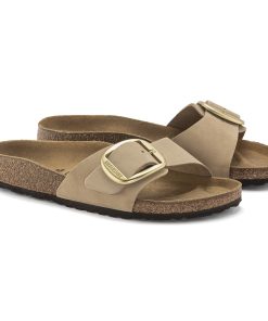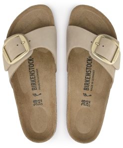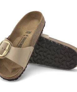 An icon since 1963, the Madrid sandal redefined the slip-on look with a single strap. This season, soft nubuck leather pairs perfectly with a big, gold matte buckle—sized up to make a statement Complete with go-all-day comfort from an original contoured BIRKENSTOCK footbed.