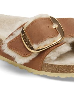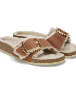 A strap, a buckle and a contoured cork footbed are masterfully combined to create the original Birkenstock sandal – the Madrid. This version is incredibly cozy featuring a color-coordinated genuine shearling lining, shearling lined straps and a big, elegant pin buckle. The upper is a soft yet durable oiled leather.