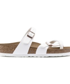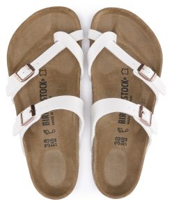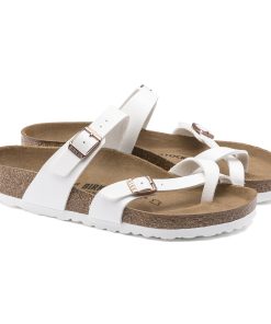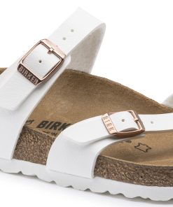 Supremely comfortable with sophisticated, crisscross straps, the Mayari redefines the thong sandal with a single toe loop. Birko-Flor® adds a smooth finish to the everyday favorite. Complete with classic BIRKENSTOCK design elements, like adjustable buckle closures and a contoured footbed for the ultimate in support.