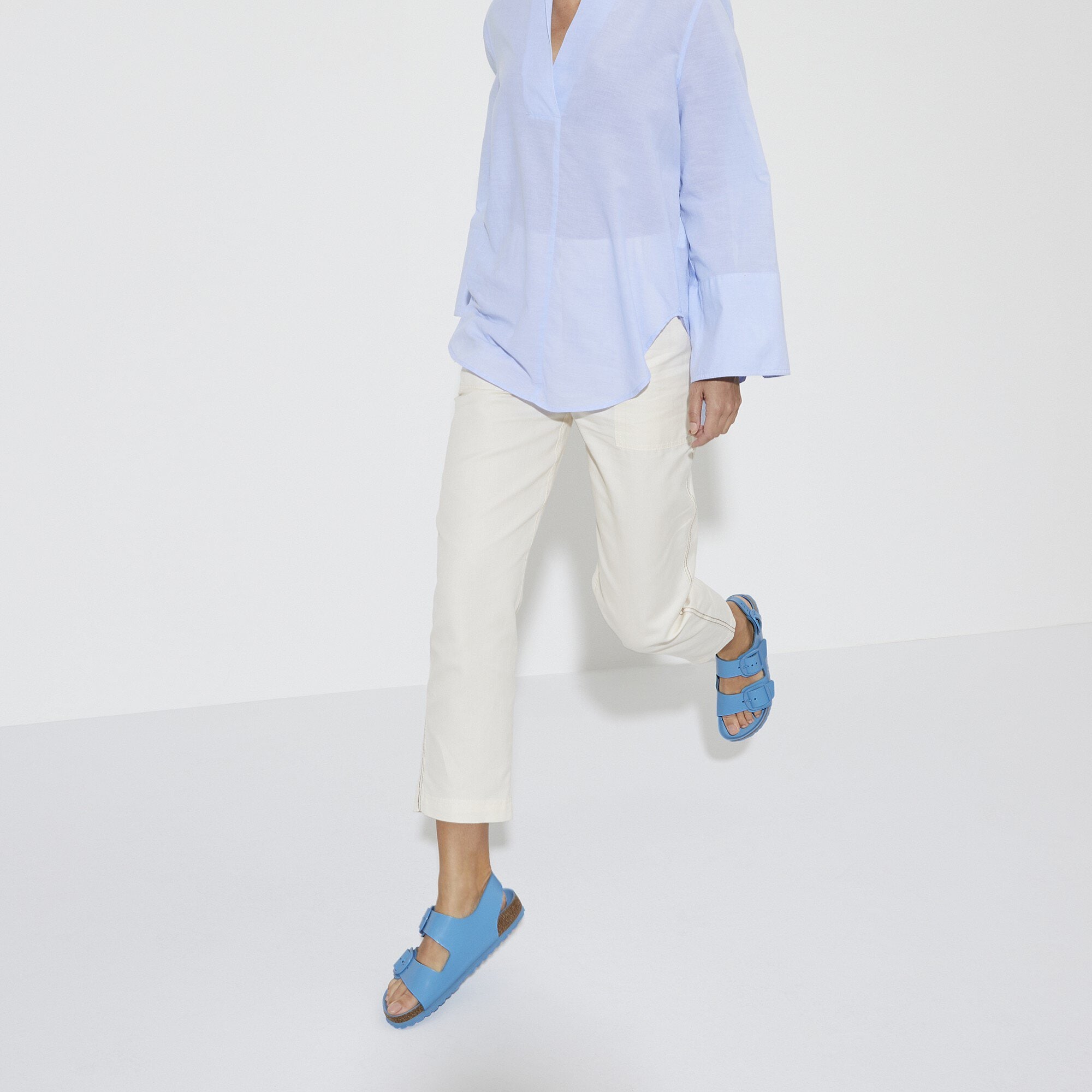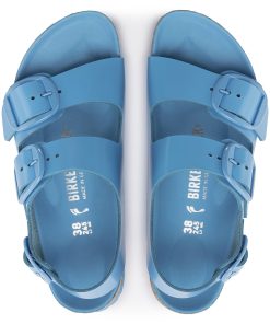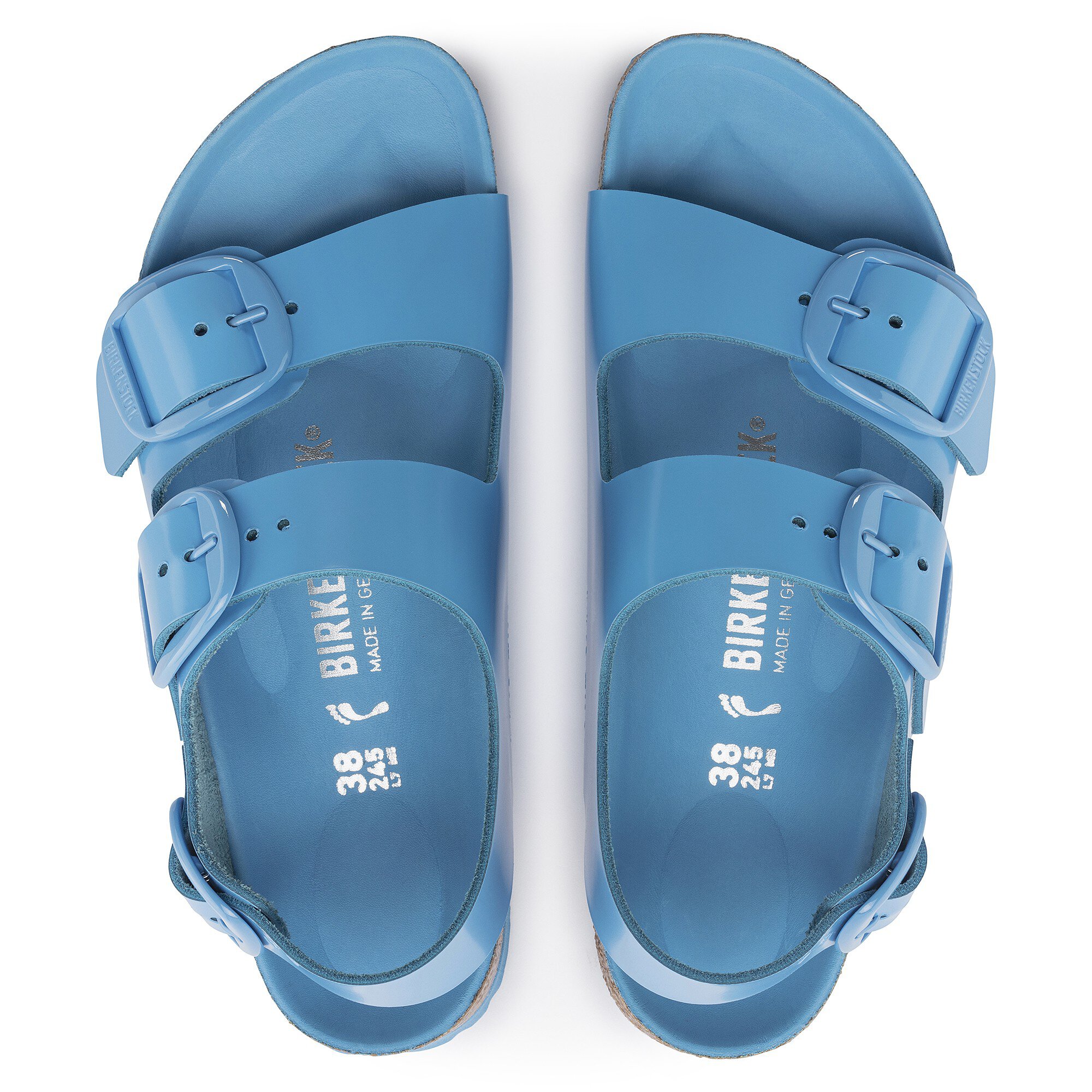 Maximum grip, stability, and a perfect fit! The BIRKENSTOCK Milano offers all of this thanks to its compact design with an ankle strap. The Big Buckle version features a large, elegant pin buckle. The semi-exquisite footbed is fully lined with soft piumato leather, making it exceptionally comfortable. The upper is made from high-quality natural leather with a shiny patent coating.