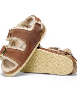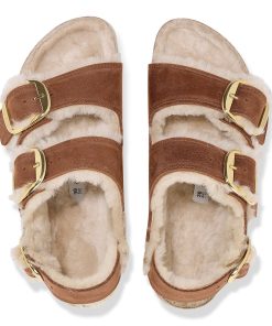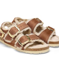 Birkenstock Women’s Sandals Milano Big Buckle Shearling Oiled Leather Cognac | Cognac