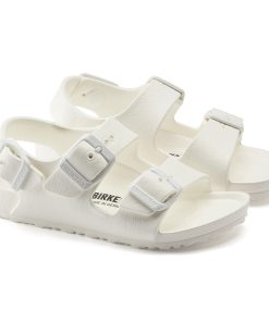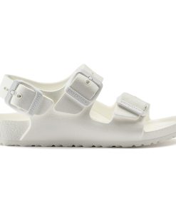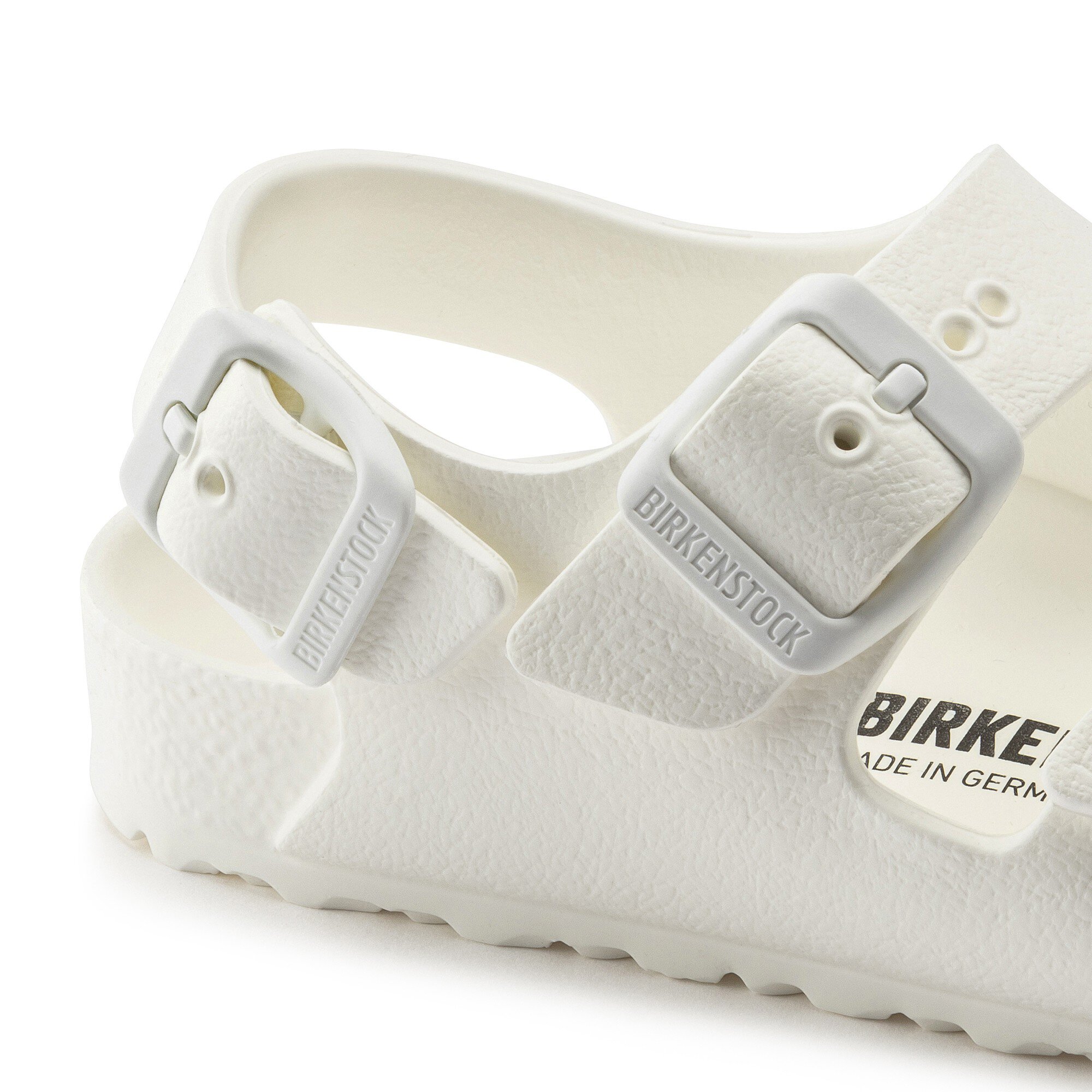 The BIRKENSTOCK Milano – a classic back-strap sandal with functional style for kids. Modeled on the cork original, this back-strap sandal is made from ultra lightweight and highly flexible EVA. These sandals are shock absorbing, waterproof, and skin-friendly. Wear them at the beach, in the backyard, or by the pool. Sandals for all-day play!