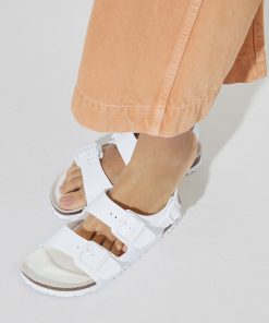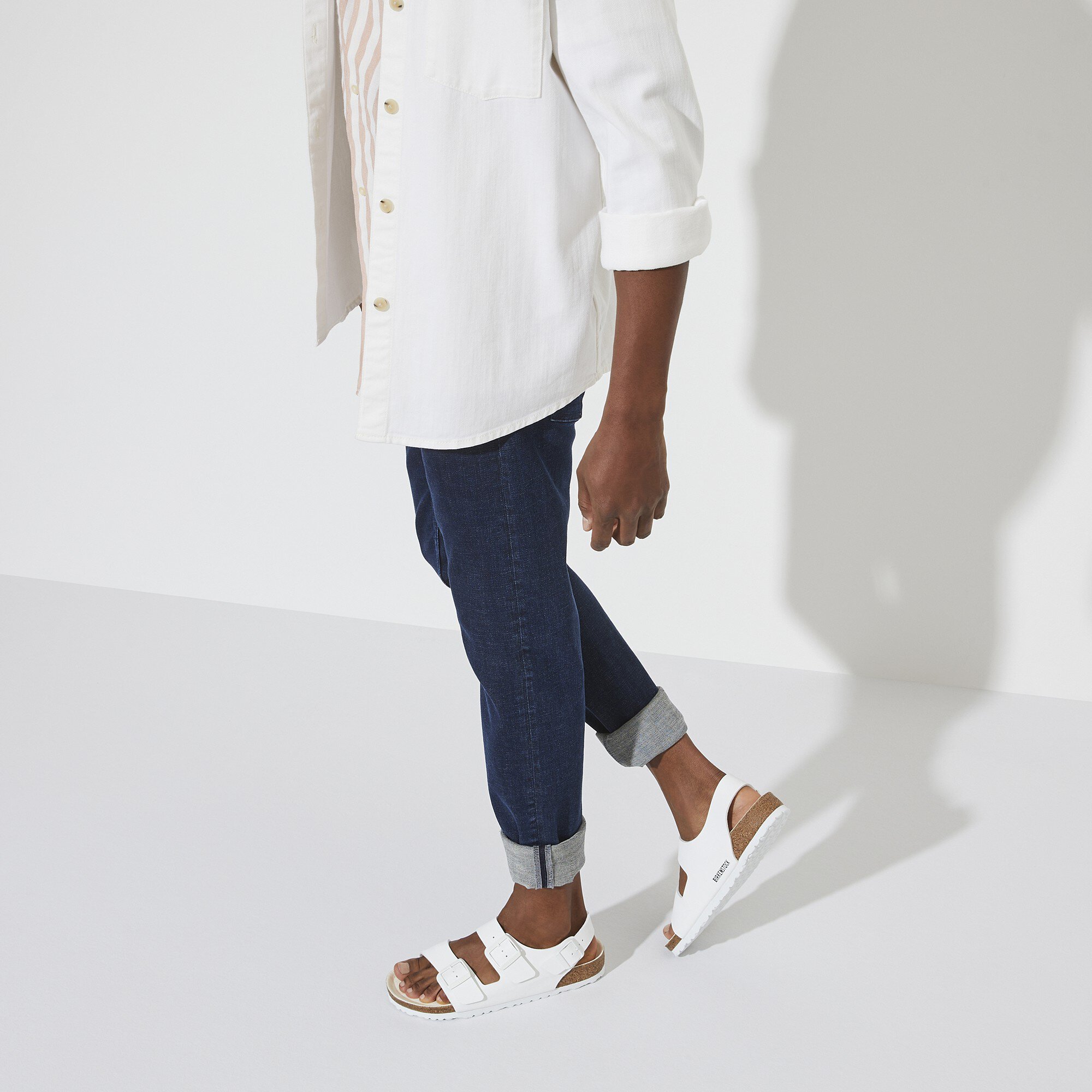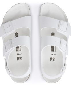 A classic, two-strap style from the front with added security in the back. The fashion favorite Milano sandal is updated in signature Birkibuc®, giving the upper a distinct surface character. With an original contoured footbed for support, it’ll feel uniquely yours wherever you take it.