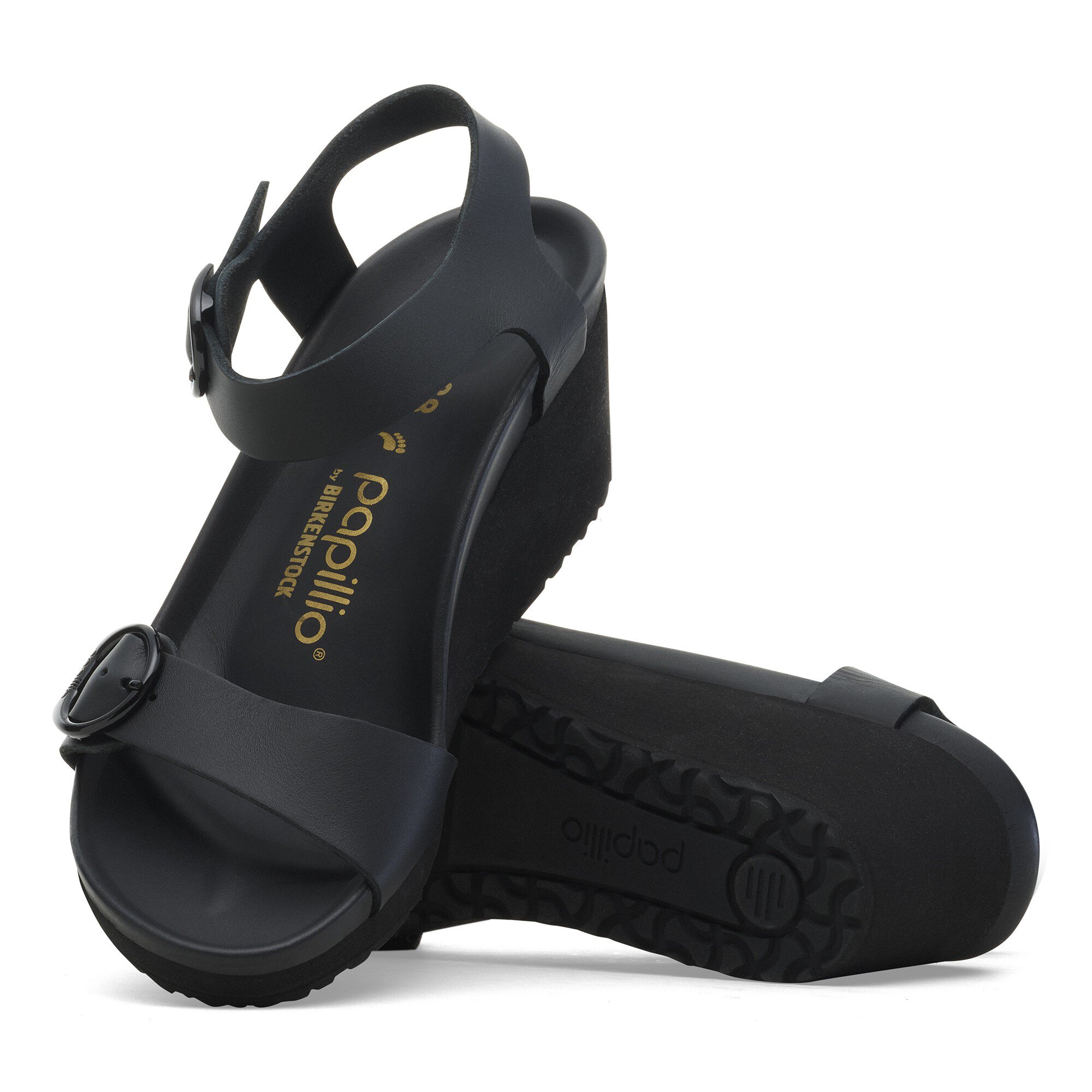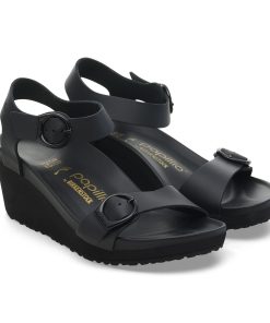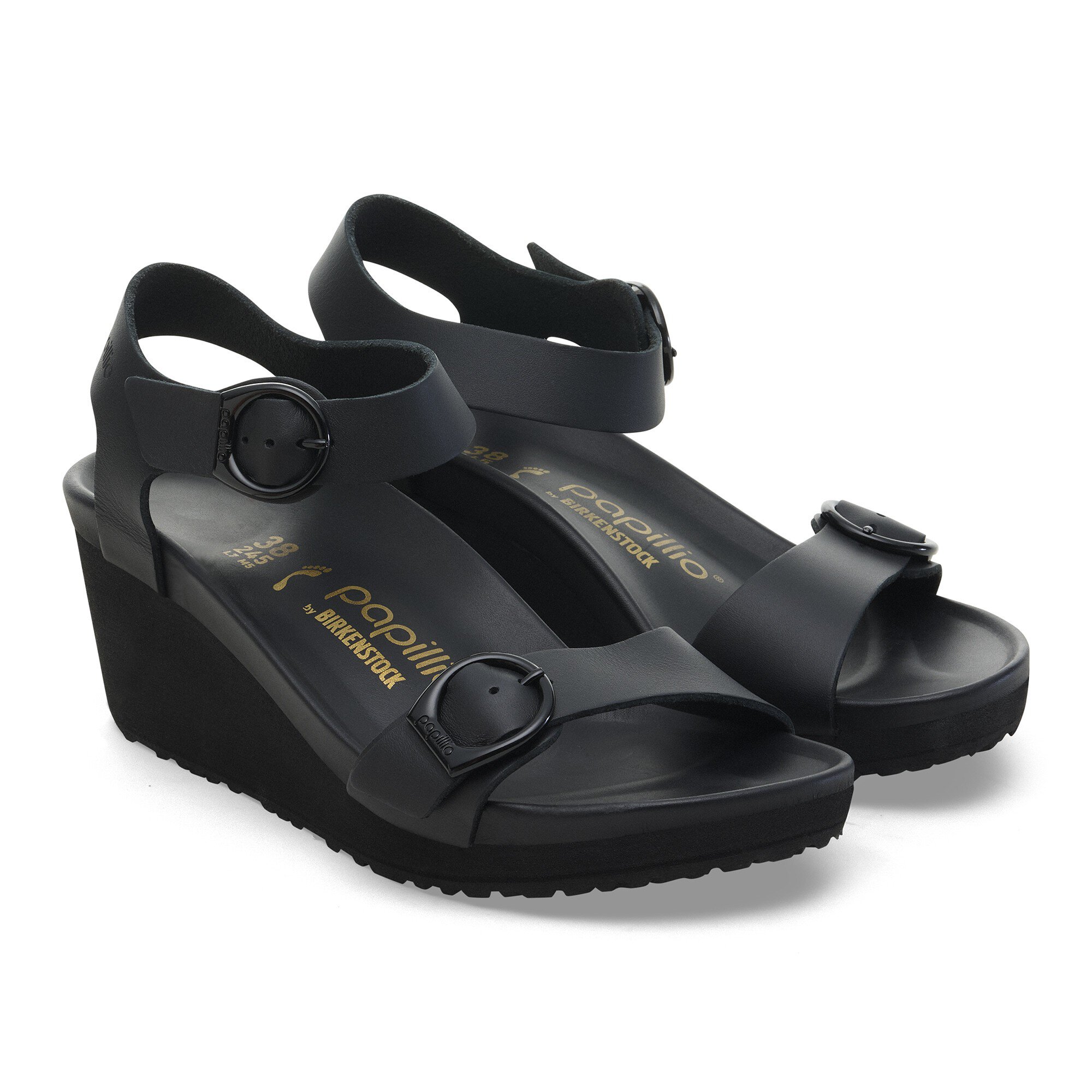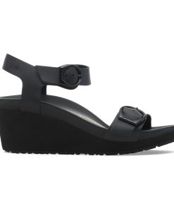 High quality. Luxuriously smooth leather and an all-black design gives the Soley wedge day-to-night versatility. Ultra-smooth leather is wrapped around the contours of our footbed, giving you a luxe, supported landing every time. It all comes together with elegant, rounded buckles.