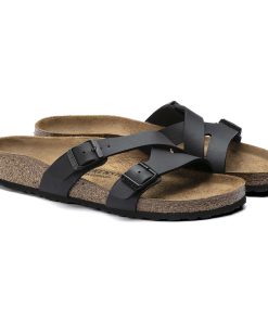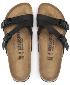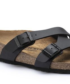 A geometrically designed strap sandal. The Yao couples style with a touch of luxury and features the iconic BIRKENSTOCK footbed to provide both comfort and flair. Shown in Birko-Flor® nubuck.