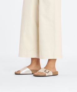 - Contoured cork-latex footbed creates custom support with wear