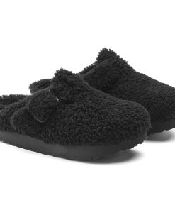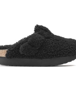 Birkenstock Women’s Shoes Boston Big Buckle Flex Platform Shearling Teddy Black | Teddy Black