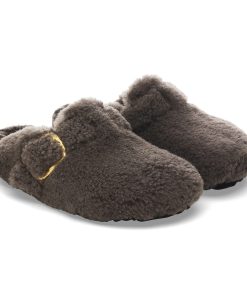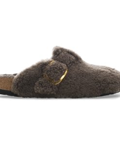 Birkenstock Women’s Shoes Boston Big Buckle Shearling Concrete Gray | Concrete Gray