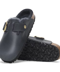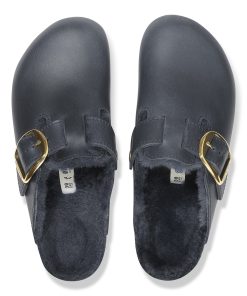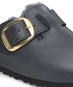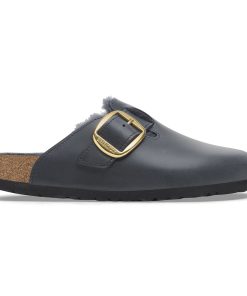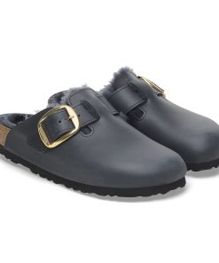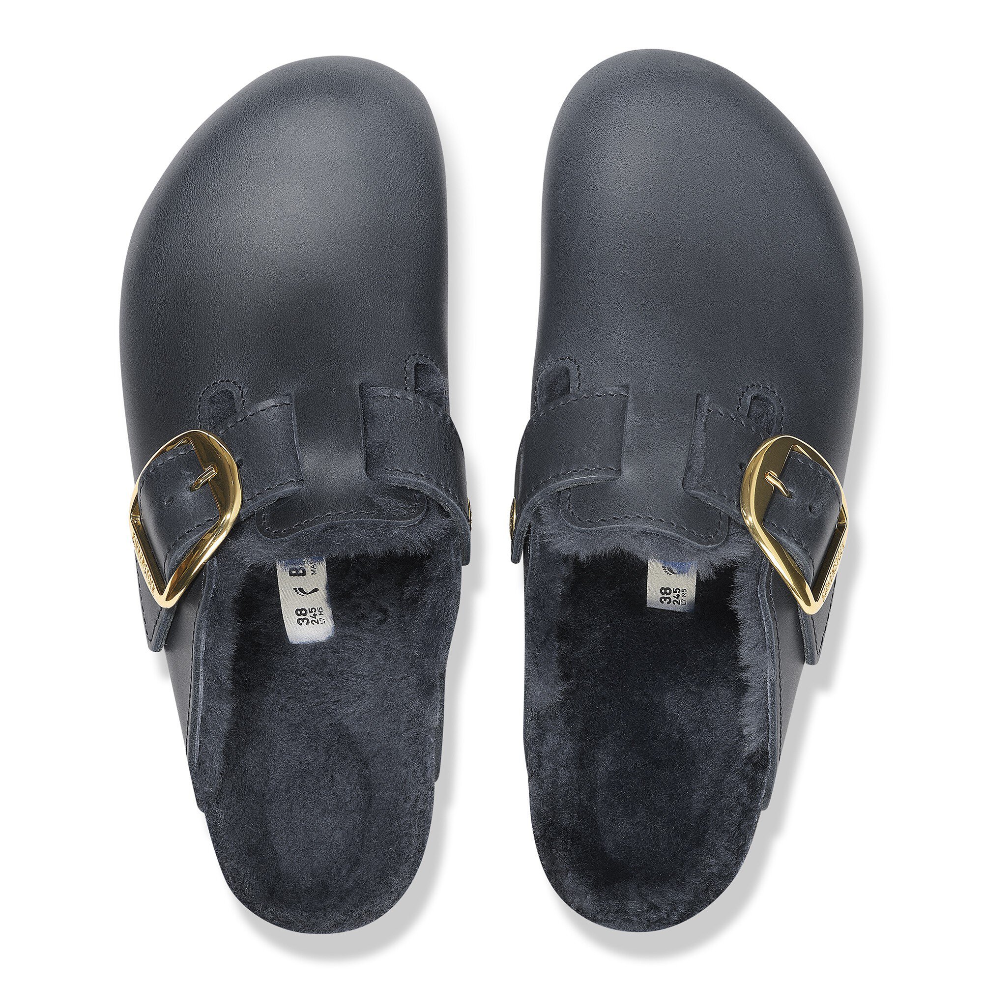 Birkenstock Women’s Shoes Boston Big Buckle Shearling Oiled Leather Midnight Blue | Midnight Blue