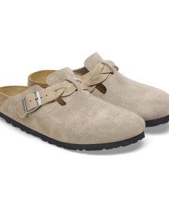 Birkenstock Women’s Shoes Boston Braided Suede Leather Taupe | Taupe