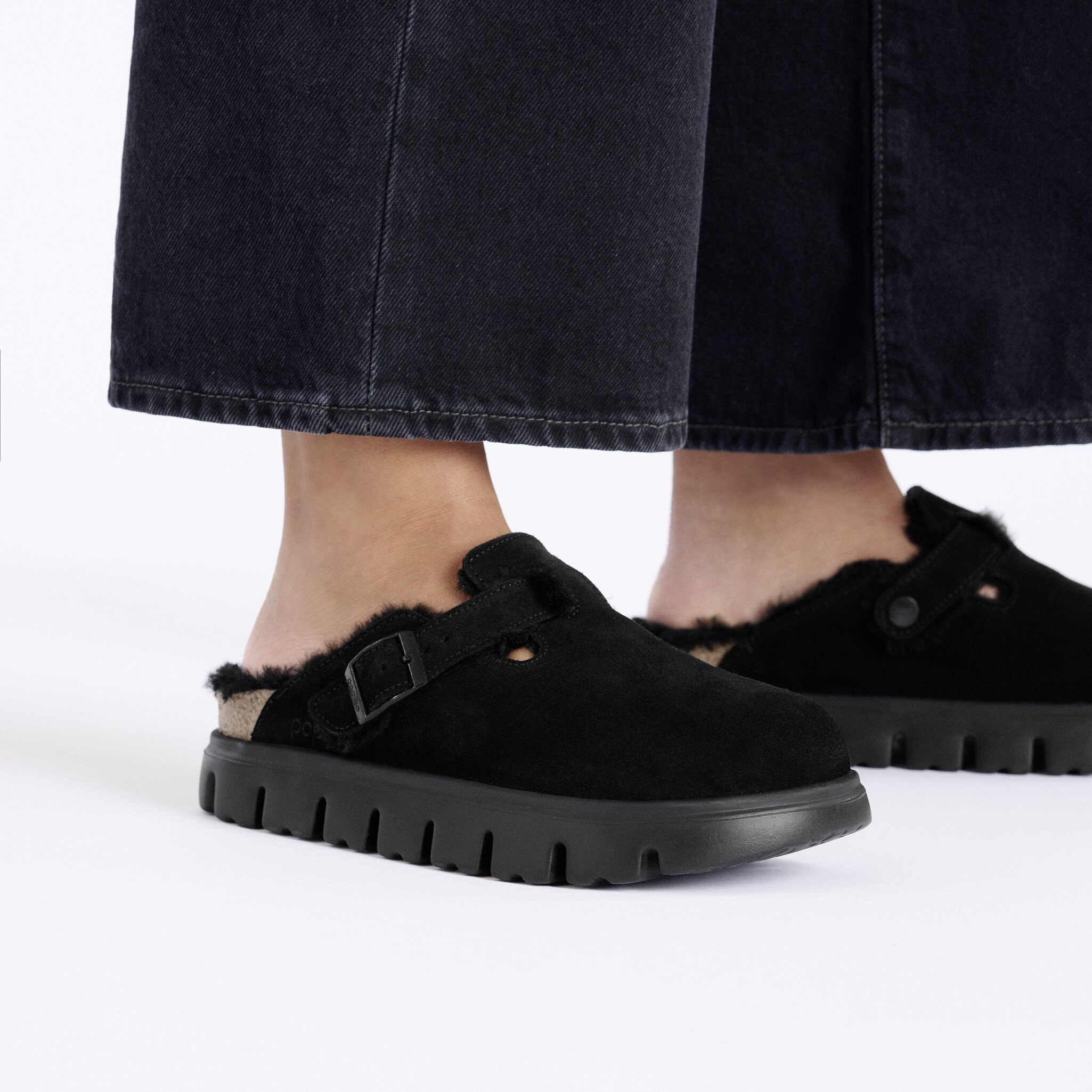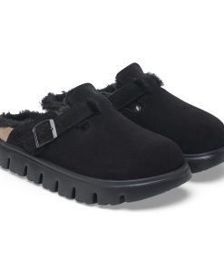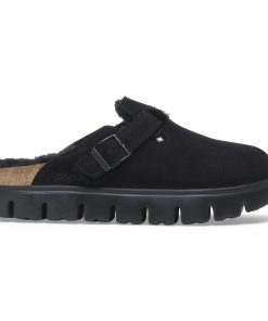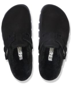 Birkenstock Women’s Shoes Boston Chunky Shearling Suede Leather-shearling Black | Black