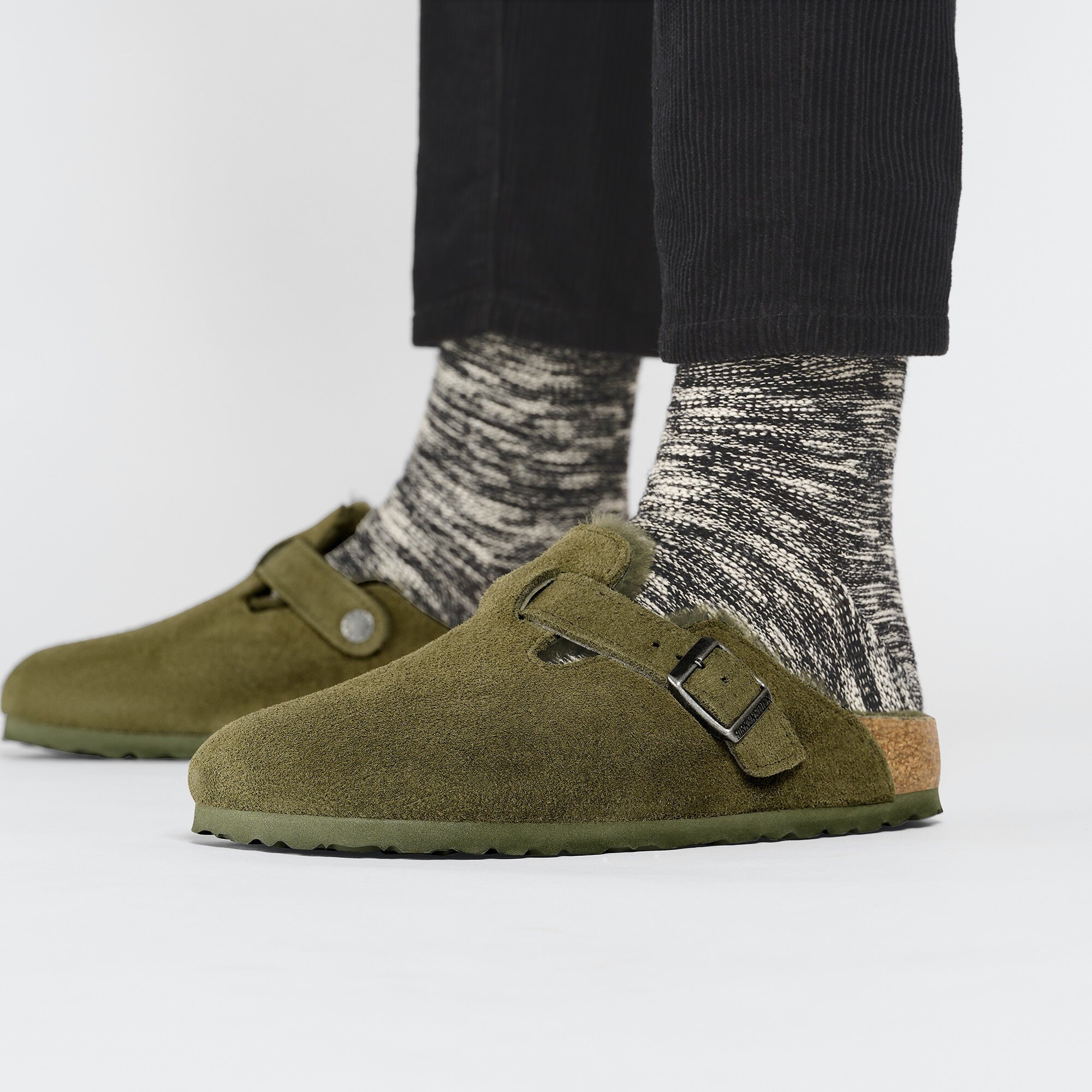 The Boston clog, made cozy for the colder months. Classic suede lends a velvety feel that continues on the inside. The style is fully lined in genuine shearling, right down to the original contoured footbed. A soft, supportive landing every time.