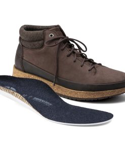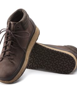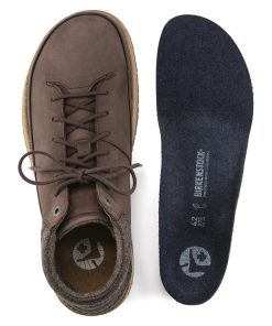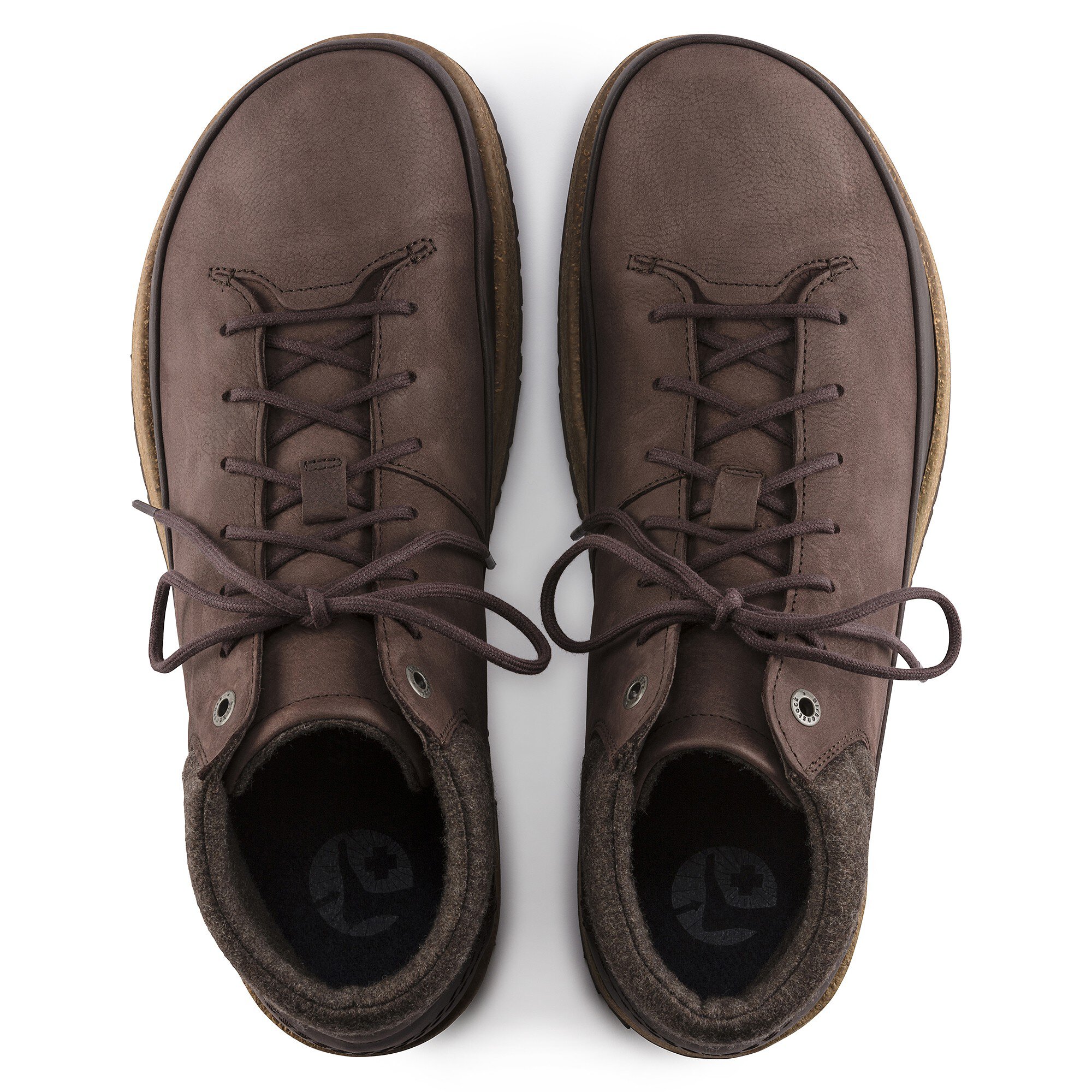 Presenting the BIRKENSTOCK Honnef High – our newest street smart ankle boot engineered completely around our new Deep Blue Footbed. The four part footbed includes a moisture wicking microfiber liner, cork and jute layers for optimum arch support and a PU base for added shock absorption and forefoot cushioning. The sporty lace up style is perfect for your most active days, whether that’s all day around town or on your next travel adventure, The oiled nubuck upper is durable and easy to clean, fully adjustable lacing for optimum fit, wool synthetic lining for internal temperature control and injected rubber outsole for added grip and durability.