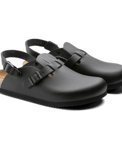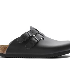 The Kay Super Grip clog is designed for versatility, with on-the-job features that work for you. Featuring a convertible strap that swivels down to provide a secure backstrap or swivels up when you want a more casual style. Its smooth leather upper is durable and easy to clean, perfect for professional environments. With a Super Grip rubber outsole for high traction and a cushioned soft footbed to keep you comfortable through long hours on your feet.