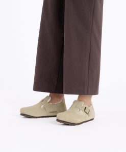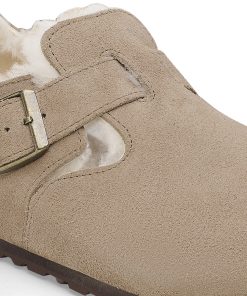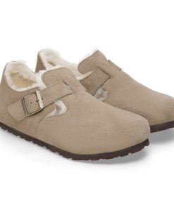 The BIRKENSTOCK London is perfectly simplistic with clean lines and an adjustable buckled strap. This version of the London features shearling for added warmth. The upper is made of incredibly soft suede.