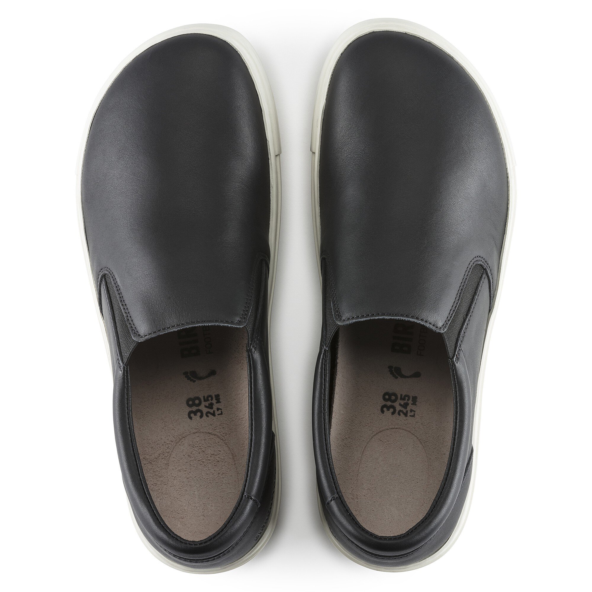 Meet the BIRKENSTOCK Oswego. The perfect casual slip-on shoe. With a flexible rubber sole and and unique cork PU midsole for extra shock absorption, stay comfortable all day long. Take these sporty shoes anywhere and everywhere. The upper is made of high-quality, soft natural leather.